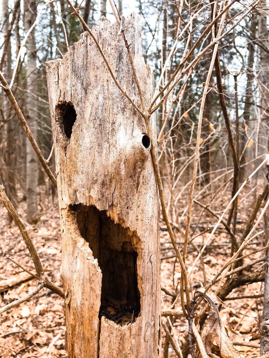 Altri numerosi uccelli trovano protezione per la nidificazione negli alberi morti: cince, civette e allocchi, etc…